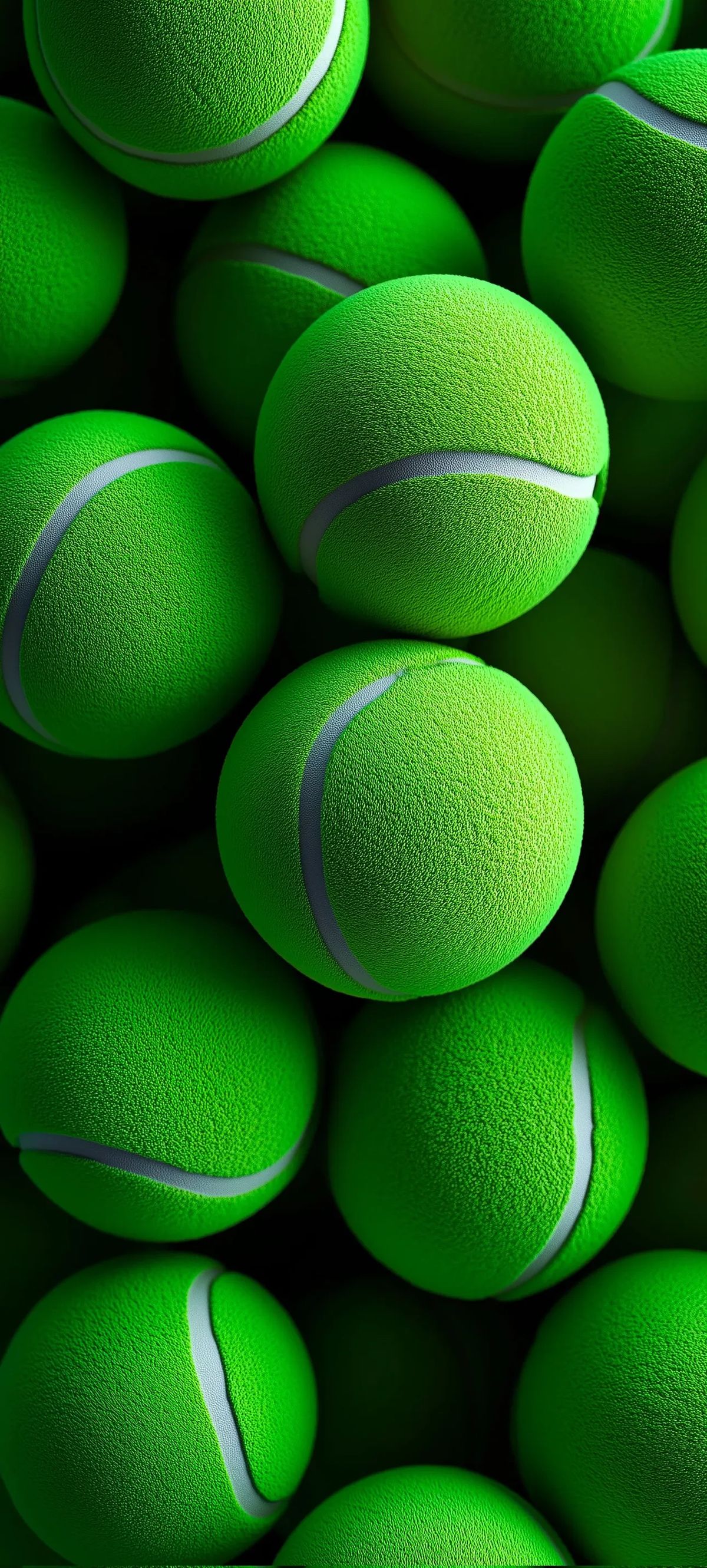 This image shows a close-up of several tennis balls.